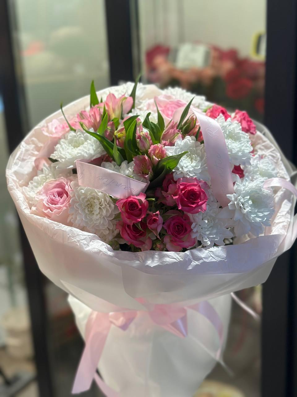 букет сборный с кустовой розой