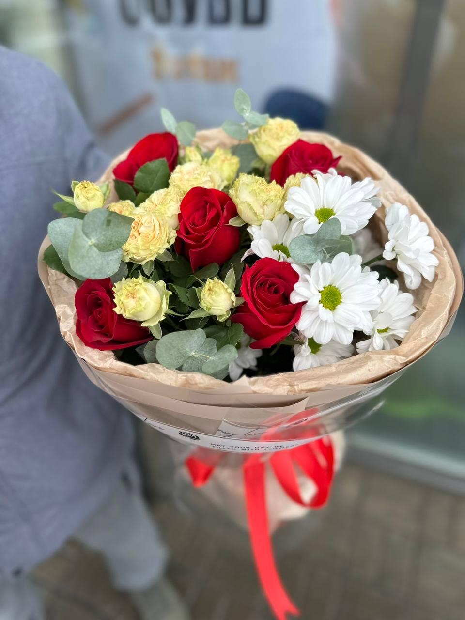 букет сборный с кустовой розой