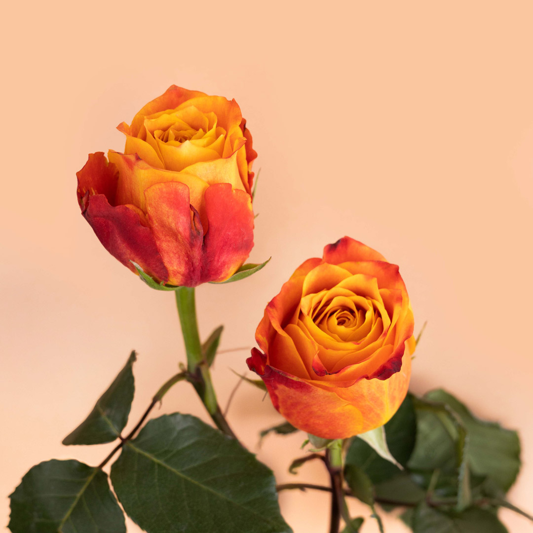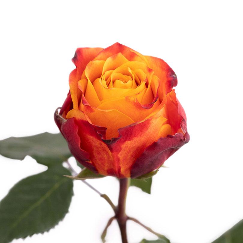 Яркая желто-красная роза сорта Атомик