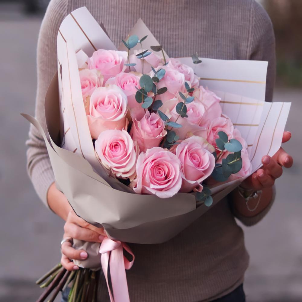 Букет из 15 роз Сорта Мандала с Эвкалиптом